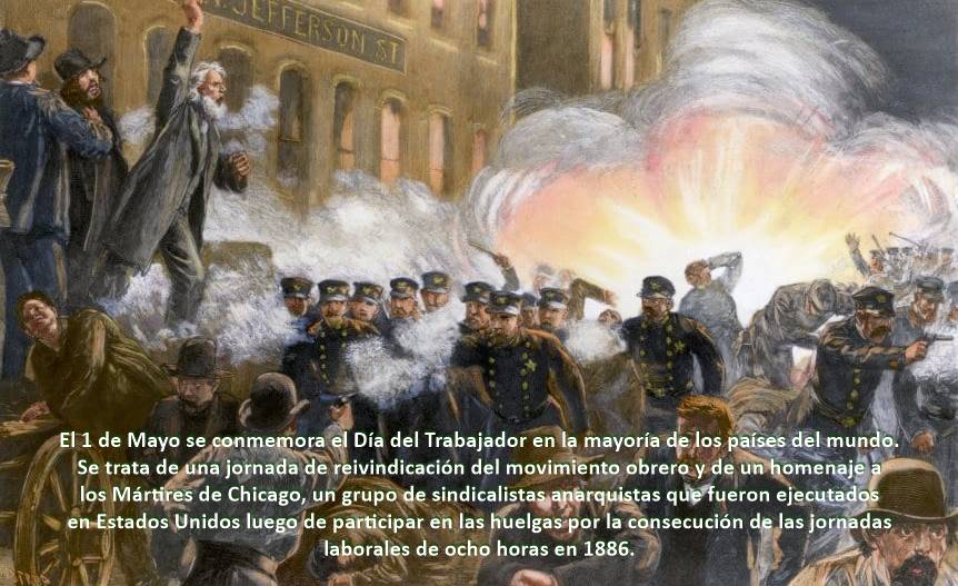 El 1 de mayo de 1886, 200 mil trabajadores iniciaron la huelga mientras que otros 200 mil obtenían esa conquista con la simple amenaza de paro. En Chicago, donde las condiciones de los trabajadores eran mucho peores que en otras ciudades, las movilizaciones siguieron los días 2 y 3, cuando tras una batalla campal una compañía de policías procedió a disparar a quemarropa sobre la gente, produciendo seis muertos y decenas de heridos.